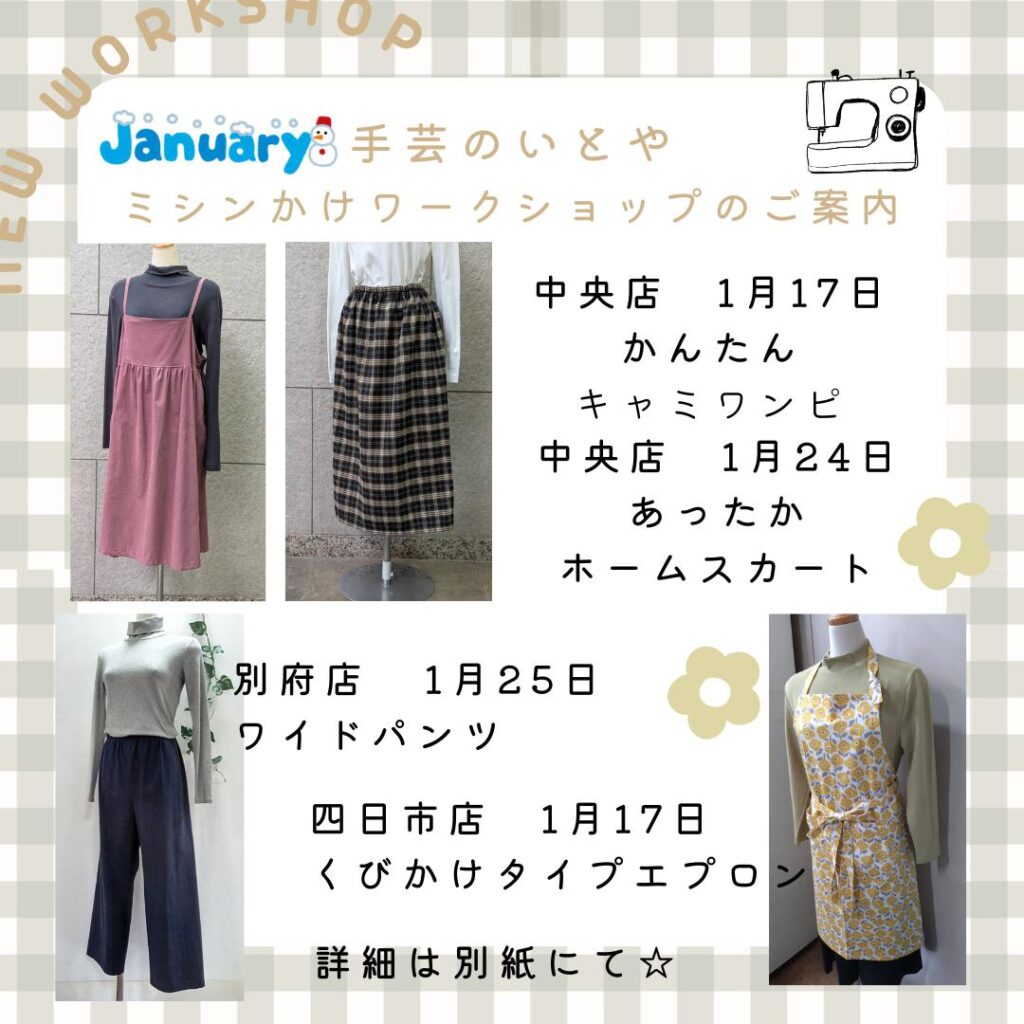 中央町店 1月17日(土)ミシンかけワークショップ 「かんたんキャミワンピ」