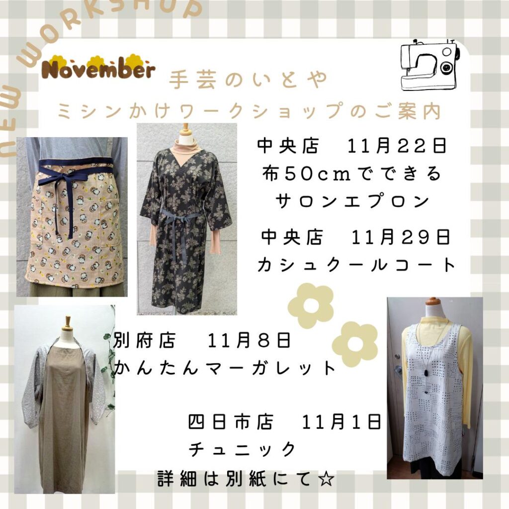 四日市店 11月1日(土)ミシンかけワークショップ 「チュニック」