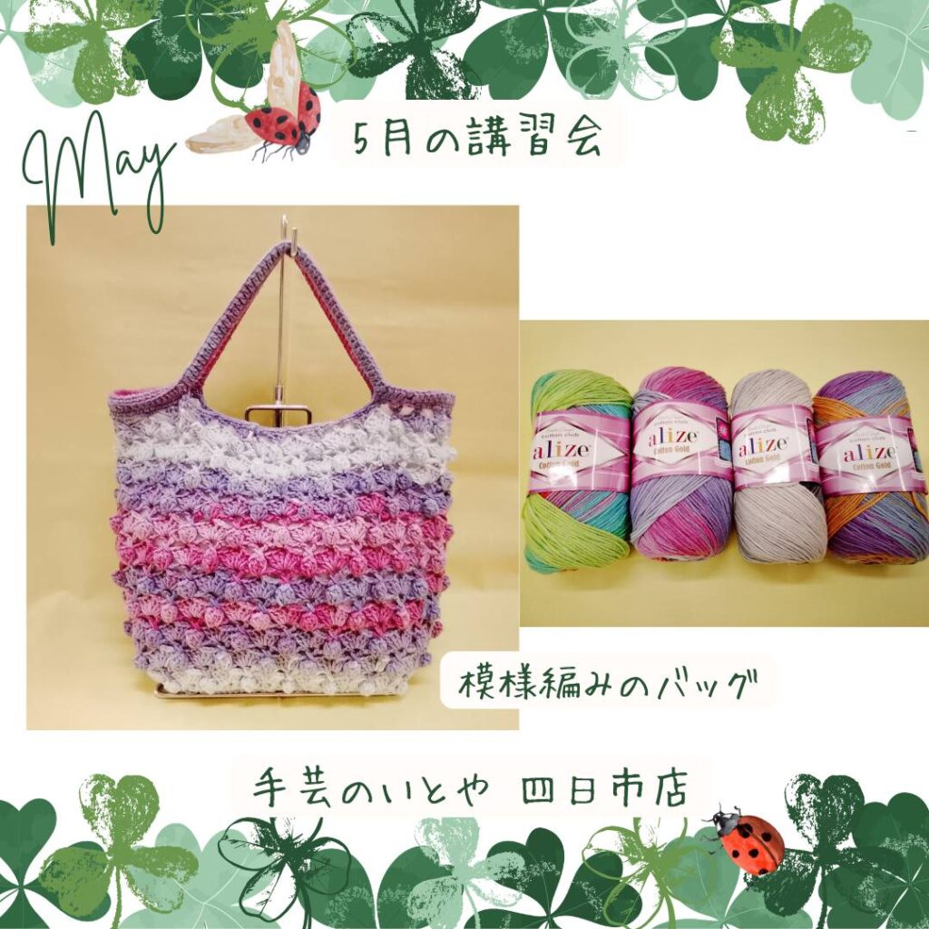 四日市店5月の講習会は「模様編みのバッグ」です☆