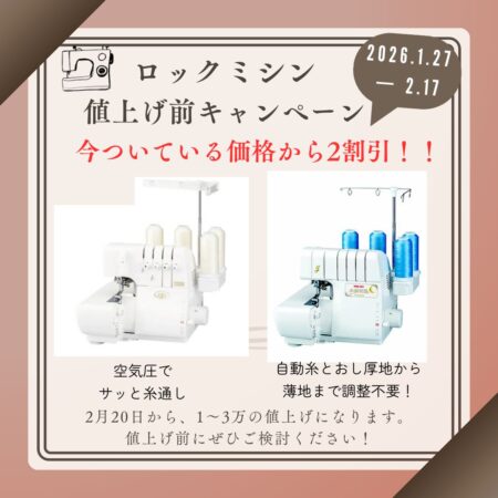 1月27日(火)から2月17日(火)まで!ロックミシン値上げ前キャンペーン☆