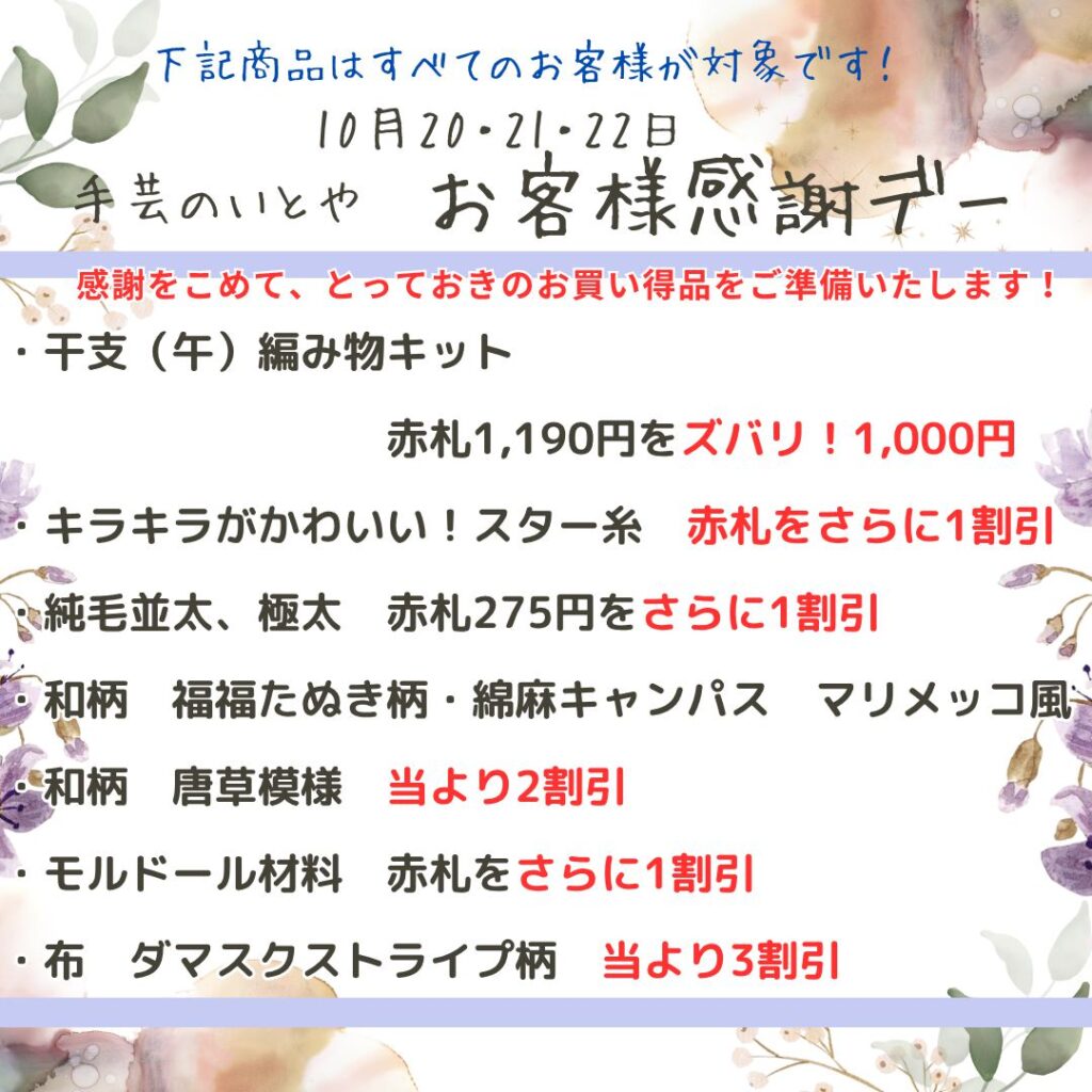 【20日から3日間!!】毎月20・21・22日はお客様感謝デー!日頃の感謝を込めて、すべてのお客様が対象です☆下記人気の商品がお買い得♪