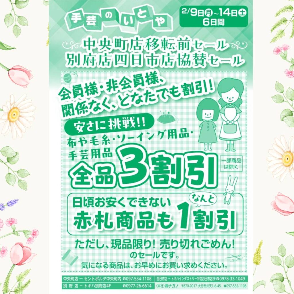3. 2月9日(月)から14日(土)の6日間開催!手芸のいとや中央町店移転前セール開催♪